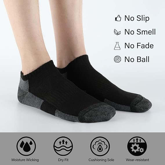 - Cushioned Sole: With mid-weight cushioning on the sole, the soft material padding relieves the pressure on your feet, it also has good moisture wicking function to keep your feet dry in your daily life.